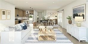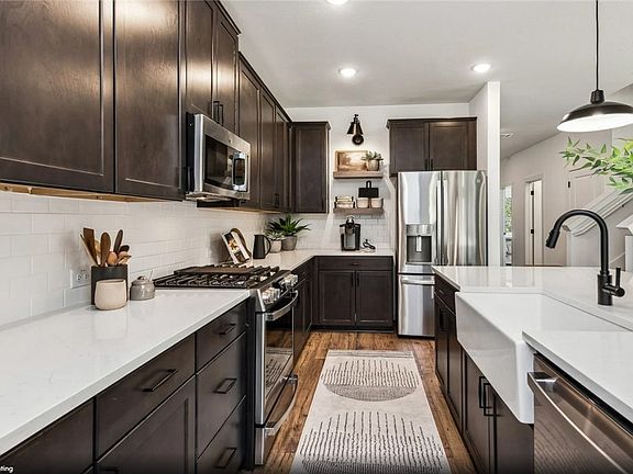 Guest suiteLarge islandStainless steel appliancesFramed mirrorsSconce lightingBrushed nickel hardwareOpen-concept kitchen