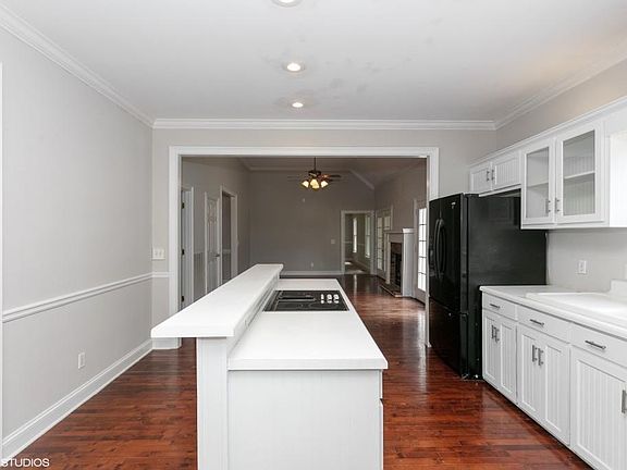 - Kitchen Features: Breakfast Bar, Eat-in Kitchen, Laminate Counters, View to Family Room, Kitchen Island, Cabinets White