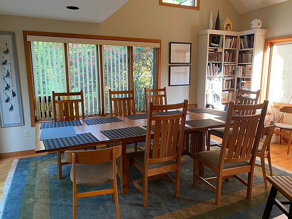 This beautiful contemporary home sits on a corner lot, in a very quiet neighborhood, just one block off of the Williams College campus, two blocks from Spring Street, and a short walk from the Clark Art Institute and lovely hiking trails. The first floor consists of an open kitchen and breakfast area as well as a formal dining room, sunken living room, a den with TV, and a bathroom with shower. Upstairs there are two bedrooms (with queen size beds), one of which has an office area area, and a bathroom with shower (recently renovated). There is also a second desk area on the 2nd floor. The downstairs den can also be used as a 3rd bedroom if desired (there is a double size pull-out sofa.). There is plenty of parking in the driveway and one space available in the garage. Laundry is available on the lower level, and there is a deck with table and grill available for use. This property is available for a minimum rental of 3 months, at $2850/month, fully furnished. Owner pays for trash pick up, yardcare, snowplowing, and monthly cleaning. No pets, no smokers.