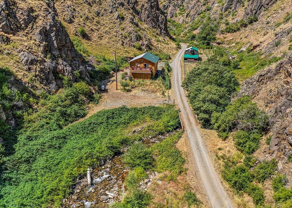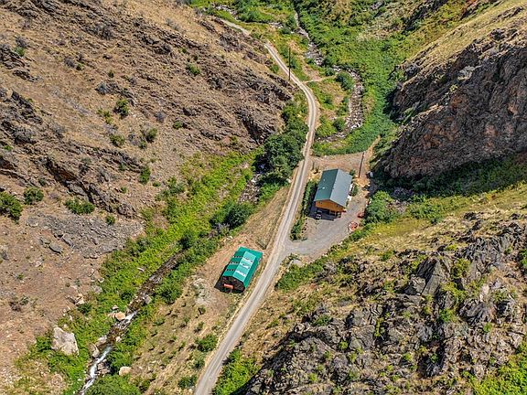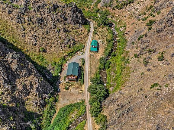 Beautiful remote private ranch property on 60 acres along Lake Creek. A wildlife haven, this property is perfect for those who desire solitude and beauty. The 2 story ranch house combines 1500sf 2 bed 1 bath upper level living space with amazing views of the year around creek and dramatic canyon. This includes an incredible 1200sf finished shop/garage with a full bath, office and storage space. This property also includes a 2 story barn, fruit orchard, and more blackberries than you'll know what to do with!