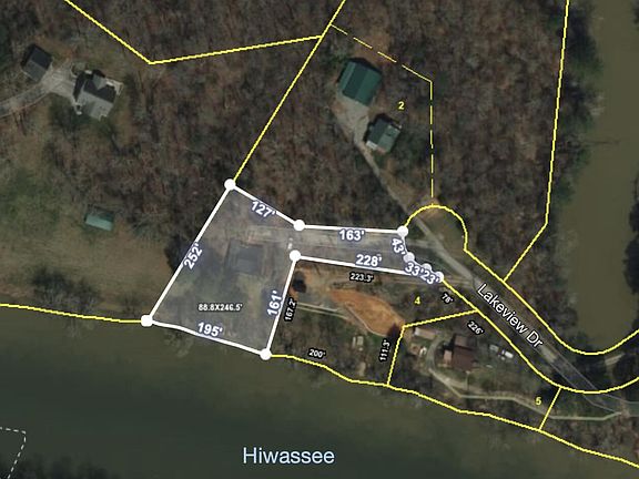 HIWASSEE RIVER WATER FRONT HOME. Come get away from it all! Incredible river vista on peaceful, wooded, private 1.07 acre lot. 3 bedrooms, 2.5 baths and full length covered rear & side decks overlooking almost 200 linear feet of water front. Main floor master bedroom with en suite bath. Stone faced wood-burning fireplace. Main floor laundry and home office/4th bedroom with powder room. Two additional bedrooms upstairs share full bath. Dry, clean, 500+ SF basement workshop/storage area. Low annual HOA fee subsidizes communal boat ramp within easy walking distance.