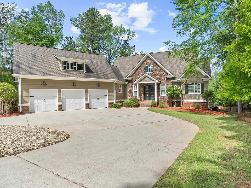 Meticulously maintained with spectacular details! This home is located in the popular and gated swim/tennis neighborhood of Greystone Arbor & is custom designed & equipped with extras you will love. Cathedral ceilings in the great room frame a space rich with trim & glorious natural light. This space highlights a gorgeous stone fireplace flanked by custom cabinets. Open & spacious, the adjacent dining room has access to the covered porch & a view of the saltwater pool. Your gourmet kitchen is light and bright, a delicious contrast to the rich walnut stain of vaulted, tongue-in-groove ceiling. Here, you’ll find stainless steel appliances, a beverage center, double ovens & oversized island with seating, along with a dining area & access to a private, screened porch with another stone fireplace. The primary bedroom suite on the main level includes a striking, deep tray ceiling & ensuite bath with custom cabinetry, dual sinks, closets & soaking tub. The terrace level features 3 generously sized bedrooms, 2 full baths, a bar/kitchenette & living room with access to your saltwater pool & fenced yard. Competing for your most loved features will be the 3-car garage, whole-house sound system, recirculating hot water & spray foam insulation. GREAT location close to schools, shopping, dining & the Club at Lake Sinclair!