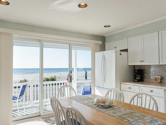 Take in the fresh sea breezes and spectacular ocean front views from this light and airy, year round townhouse on Long Sands Beach. Watch the surfers and listen to the beautiful ocean sounds while relaxing on one of the many decks. Main floor features recently renovated seagrass inspired kitchen with a huge pantry, modern stone wood burning fireplace, and coastal style living room that leads to a large deck. Stunning ocean views and decks from 2 of the upstairs bedrooms. Tons of storage on every level including a walk in closet in the finished walkout lower level, which also features another bath, laundry, mudroom and den. Never worry about parking at the beach again. Great rental income potential of $3,000+ a week in the summer. Walk, bike or hop the convenient Trolley to Nubble Light or Short Sands beach area. York Beach life is calling!