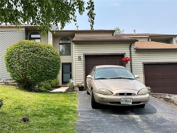Beautifully renovated and well maintained 2 spacious Bedrooms 1.5 baths Townhouse, located in Colony Point, Camillus. Enter a foyer with a cathedral ceiling and natural lighting. Large spacious dining and living rooms. A newer sliding glass door opens to a rear yard with outdoor lighting awaiting you to add a deck or patio. There is ample storage, and an unfinished high ceiling basement for added space. Other features include central air, wood burning fireplace, updated baths, with bidet, new fire rated door leading to garage from kitchen, new front door and screen, new slider door, new appliances, updated energy efficient 40 Gallon hot water tank, laundry room with hook ups both in basement and second floor, newer flooring, approximately 12 year old roof, solid walls for reduced sound. This townhouse is conveniently located close to major routes, shopping, and Downtown Syracuse. Move in ready to add your personal touch and also no HMO fees.