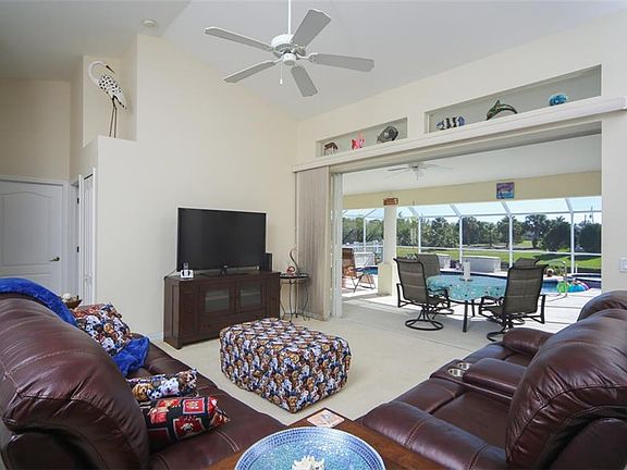 PRICE REDUCED*TURNKEY FURNISHED*Beautiful 5-bedroom 4-bathroom home located in the popular golf community of Rotonda West. This home features 8-foot sliders that bring the outside in this creates beautiful views from the moment you walk through the front door. Plenty of room for entertaining including a formal dining room, dinette, breakfast bar, and lots of outdoor seating. The split floor plan offers two large master suites that open directly to the heated pool and spa. The large pool and spa area overlook a beautiful freshwater canal full of wildlife. A small fenced area is located just outside the pool cage for your furry friends or additional storage. Den/Study may be used as a guest bedroom or an office. The guest bedrooms are set up perfectly with two twin beds, and a bunk bed perfect for guest. These guest bedrooms share a Jack and Jill bath. This home would be an ideal fit for a full-time residence, secondary vacation home, or vacation rental investment. Range, Refrigerator, microwave, dishwasher, washer, and dryer were replaced in 2015. Pool & Spa pump and motor both replaced 2015. New sprinkler control panel replaced in 2015. Don't miss this opportunity to own your own piece of paradise!
