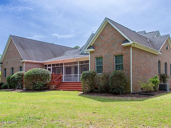 This beautiful 3-bedroom, 2.5-bath brick home is located in The Albemarle Plantation Community on the pristine Albemarle Sound. Key features include a spacious screened in porch creating a great space to enjoy your morning coffee or relax with a book. The kitchen, creates a functional and inviting space for cooking and meal preparation. A generous master bedroom with suite bathroom offering a soaking tub, walk-in shower, dual sinks, and a walk-in closet. There is a formal dining room with a great view. The family room features a gas log fireplace and the living room can be used as a study/office.. The deck area includes built in benches allowing for relaxation. The property's crawl space is equipped with a dehumidifier, which helps maintain optimal humidity levels, preventing moisture related issues. An ample two-car garage makes for work or hobby space. A large FROG makes way for a multiple bonus room Overall, this charming home offers a comfortable living space with appealing features, a wonderful waterfront community with a range of amenities and activities making it a comfortable and luxurious retreat home! This community offers endless opportunities to enjoy life on the water. Their stunning amenities boast one of the largest private full-service, deep water marinas on the east coast and a private waterfront world-class golf course designed by Dan Maples. With tennis courts, fitness facility, community center, community gardens, and several dog parks, residents always have something to look forward too. Sq. footage based on tax card. Note, owner is selling property as is!