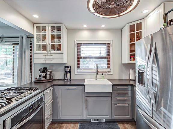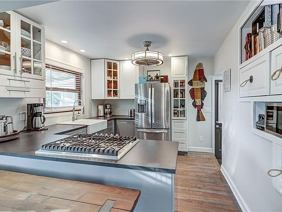 Meticulously renovated ranch home with open floor plan and includes 3 parcels equaling nearly a half acre. Re-finished Red Oak floors. Remodeled kitchen includes new cabinetry, counter tops, apron sink, built-ins, lighting, gas range, convection oven, hidden/paneled dishwasher, stainless steel refrigerator and more. Three closets in the hallway for plenty of storage leading to the bedrooms. Bathroom has also been completely renovated with new vanity and custom shower. Fantastic tiling in the shower and floors adds to the beautiful finish. Basement has also been renovated with a family/media room, bonus entertainment room and a fourth bedroom or large office. Laundry and Workshop complete the basement. The backyard offers a deck with pergola, tons of open space backed by wooded area and plenty of privacy. This home is beautiful and well cared for, make your appointment today!