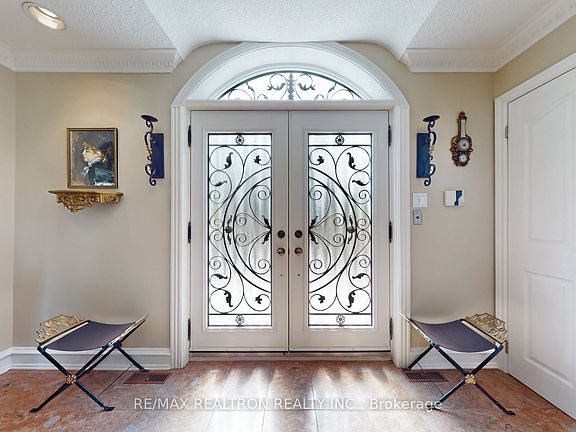 Prestigious estate home on 1.47 acres with future -acre severance potential. Offering over 5000 sq.ft. of luxury living, this custom residence features a grand foyer with soaring ceilings, hardwood floors, crown mouldings, pot lights, and 4 fireplaces. Sun-filled family room with wet bar & built-in speakers, chefs kitchen, sunroom with skylights, and main floor office. Laundry on the main floor. Master retreat with private terrace, lavish ensuite & his/her closets. Finished lower level with separate entrance, gym, sauna, games & recreation rooms. Set on a 400+ ft frontage backing to conservation & ravine in an enclave of multi-million-dollar estates.