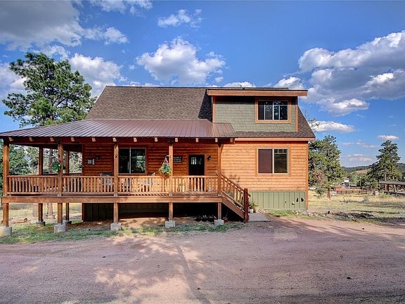 Colorado dream home with beautiful mountain views to enjoy from the wrap around porch, or inside cozied up in front of the fireplace. This home offers modern mountain luxury with hard wood floors, tongue & groove vaulted ceilings, gas fireplace, granite counters and stainless steel appliances. Main floor master, en suite soaker tub, shower, dbl sink and a walk-in closet. Main floor laundry. Two bedrooms, 3/4 bath and office loft area upstairs. Spacious family room, full bath and storage area in the walk-out basement. 97 acres of Open Space to hike in Lions Head Ranch, close to hiking at Staunton State Park or fish off the Platte. Household well allows up to 500 sq ft of outdoor watering, 3 bedroom septic suitable for 6 people. Close to public transit, 15 minutes to grocery & shopping, 30 mintues to C470 & Hwy 285. Park County low taxes and schools. Century link, Dish TV, IREA and Mt. View Waste are current providers. Open House Saturday September 14th 10 am - 2 pm.