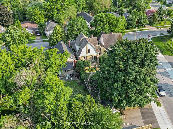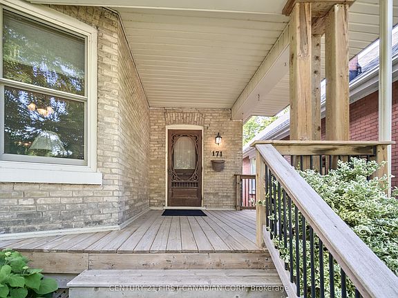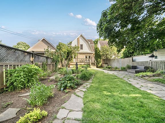 This incredibly well kept yellow brick century home sits on a deep lot on a quiet tree lined street in North London. The location offers quick access to Western University and downtown London which makes this an attractive option for first time buyers, families, or investors looking for strong long term demand. Inside, the home features craftsman style window casings, hardwood banisters, plaster ceiling details, and crown molding that highlight original character you cannot build today. Newer gas forced air furnace and central air provide year round comfort. The main floor offers a front living room with fireplace, open concept kitchen and dining area, and three spacious bedrooms upstairs. The full basement offers excellent storage and future development potential including a rough in for another bathroom. Outside is a true highlight! Enjoy coffee on the updated covered front porch or relax on the back deck overlooking the deep fully fenced yard with mature gardens, flagstone walkways, and garden shed. The private double wide driveway provides parking for multiple vehicles or a trailer. Steps to West Lions Park, Kinsmen Arena, Thames River trails, Labatt Park, London Christian Academy, downtown London restaurants and shops, and an easy commute to Western University and Fanshawe downtown campus. This is a rare chance to own a meticulously maintained century home with timeless curb appeal on an exceptional lot.