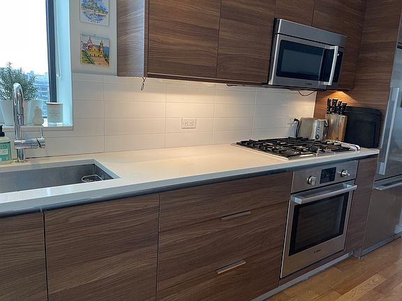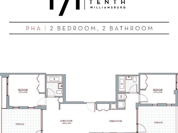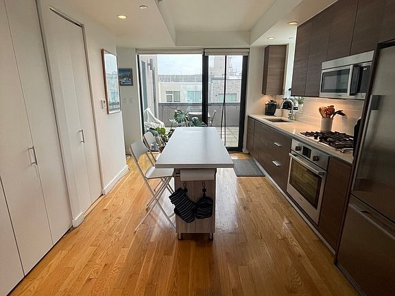 **Offering over 2 months free; net effective rent is $6,300. Inquire about potential additional concessions. No broker fees. Virtual showings available / encouraged. Available May 1st (potentially late April). Penthouse, top-floor 2 bedroom / 2 bathroom modern apartment with 2 oversized terraces (14' by 11', over 300 extra sq ft). Located at 169-171 North 10th Street, a well-kept boutique building that has recently been renovated. Floor only has 2 penthouse units, so unit is secure and quiet. Apartment unit highlights: -Tons of sunlight with oversized, floor to ceiling windows (with shades included, tilt-and-turn windows) facing north, south, and east. -Open living area and kitchen with 9' ceilings create airy space that is perfect for entertaining. -Two massive private terraces on either side of apartment enable seamless outdoor/indoor living (grilling, entertaining, lounging) with views of Downtown Brooklyn and Manhattan. -Terraces also let fresh air / cool breeze pass through the apartment (screens on both doors). -Modern kitchen finishes include Italian walnut cabinets and stainless steel Bosch / Fisher & Paykel appliances. -Two similar-sized bedrooms on opposite ends of apartment can easily fit a queen bed, office desk, and dressers / nightstands. -Two separate bathrooms with deep Neptune Zen soaking tubs and white lacquer vanities. -In-unit Bosch washer and dryer for laundry convenience. Building highlights: -Storage cube in basement included with rent. -Private, secure parking lot (currently a waitlist) and bike storage available in building. -Brand new gym for resident use with treadmills, elliptical, and weights. -Newly renovated roof deck with large lounging area and impressive views of Manhattan. -Virtual doorman system for security with secured package room. -Two blocks from McCarren Park with dog run, sporting fields, and weekend farmer's market.