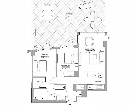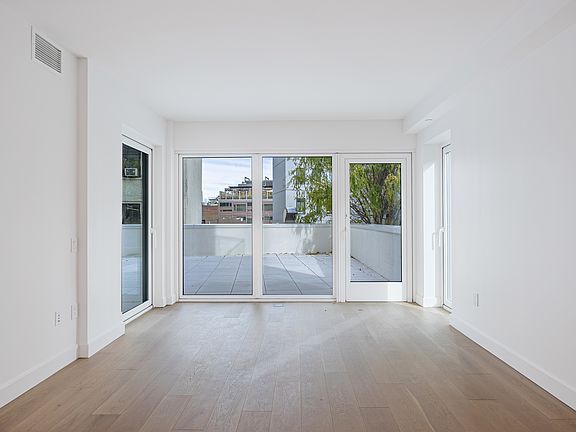 In the dynamic north side of Williamsburg, 171 North 1st Street is a brand-new condominium located between Bedford and Driggs Avenues. This stunning, 970 sq ft two-bedroom, two-bathroom residence offers floor-to-ceiling windows and refined modern finishes, embracing a spacious open living room concept that includes the kitchen, living, and dining rooms. Enjoy the exquisitely crafted full-height custom Italian-made cabinetry, sleek quartz countertops, and a suite of premium Bosch appliances that harmonize the form and function of the kitchen. The elegantly designed living spaces feature ample proportions, keyless entry, oversized windows, and captivating views. This unit also includes an in-unit washer and dryer and a 966 sq ft private terrace. The amenity-rich building offers something for everyone, including a fitness center with a yoga studio and mirror fitness screens, a Zen garden, residents' lounge, children's playroom, pet spa, garage with semi-automated parking, common laundry facility, bike storage, a package room with cold storage for grocery deliveries, and storage lockers. There's also a serene rooftop with grills and views of the NYC skyline and Brooklyn Bridge, with private cabanas available for rent. Our building, carefully designed for contemporary living, is discreetly nestled in Williamsburg, Brooklyna neighborhood brimming with parks, restaurants, vibrant nightlife, and inspiring art. Your new home is one block from Bedford Avenue's primary shopping corridor, with notable retailers including Whole Foods, Equinox Fitness, Sweetgreen, Sephora, and the Apple Store. This highly desirable neighborhood is just half a mile from the East River and a 10-minute subway ride to Manhattan. The nearby NYC Transit System includes buses: B62, Q59, B32, B24, and trains: L, J, M, Z.