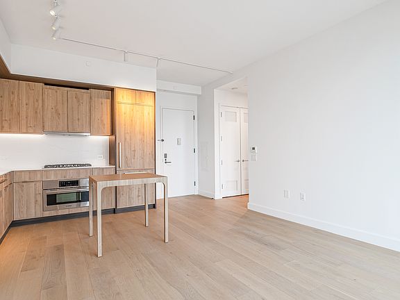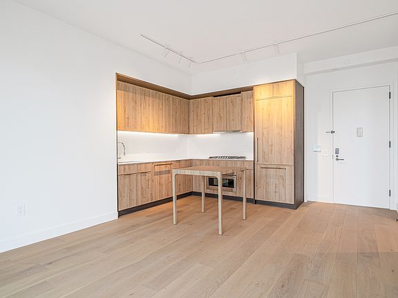 In the dynamic north side of Williamsburg, 171 North 1st Street is a brand-new condominium located between Bedford and Driggs Avenues. This stunning, 588 sq ft one-bedroom, one-bathroom residence offers floor-to-ceiling windows and refined modern finishes, embracing a spacious open living room concept that includes the kitchen, living, and dining rooms. Enjoy the exquisitely crafted full-height custom Italian-made cabinetry, sleek quartz countertops, and a suite of premium Bosch appliances that harmonize the form and function of the kitchen. The elegantly designed living spaces feature ample proportions, keyless entry, oversized windows, and captivating views. This unit also includes an in-unit washer and dryer and an 80 sq ft private balcony. The amenity-rich building offers something for everyone, including a fitness center with a yoga studio and mirror fitness screens, a Zen Garden, residents' lounge, children's playroom, pet spa, garage with semi-automated parking, common laundry facility, bike storage, a package room with cold storage for grocery deliveries, and storage lockers. There's also a serene rooftop with grills and views of the NYC skyline and Brooklyn Bridge, with private cabanas available for rent. Our building, carefully designed for contemporary living, is discreetly nestled in Williamsburg, Brooklyna neighborhood brimming with parks, restaurants, vibrant nightlife, and inspiring art. Your new home is one block from Bedford Avenue's primary shopping corridor, with notable retailers including Whole Foods, Equinox Fitness, Sweetgreen, Sephora, and the Apple Store. This highly desirable neighborhood is just half a mile from the East River and a 10-minute subway ride to Manhattan. The nearby NYC Transit System includes buses: B62, Q59, B32, B24, and trains: L, J, M, Z.