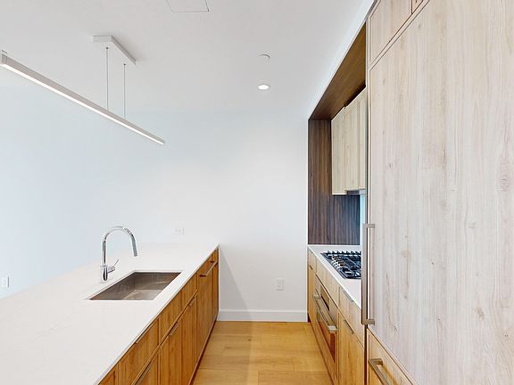 In the dynamic north side of Williamsburg, 171 North 1st Street is a brand-new condominium located between Bedford and Driggs Avenues. This stunning, 641 sq ft one-bedroom, one-bathroom residence offers floor-to-ceiling windows and refined modern finishes, embracing a spacious open living room concept that includes the kitchen, living, and dining rooms. Enjoy the exquisitely crafted full-height custom Italian-made cabinetry, sleek quartz countertops, and a suite of premium Bosch appliances that harmonize the form and function of the kitchen. The elegantly designed living spaces feature ample proportions, keyless entry, oversized windows, and captivating views. This unit also includes an in-unit washer and dryer. The amenity-rich building offers something for everyone, including a fitness center with a yoga studio and mirror fitness screens, a Zen garden, residents' lounge, children's playroom, pet spa, garage with semi-automated parking, common laundry facility, bike storage, a package room with cold storage for grocery deliveries, and storage lockers. There's also a serene rooftop with grills and views of the NYC skyline and Brooklyn Bridge, with private cabanas available for rent. Our building, carefully designed for contemporary living, is discreetly nestled in Williamsburg, Brooklyna neighborhood brimming with parks, restaurants, vibrant nightlife, and inspiring art. Your new home is one block from Bedford Avenue's primary shopping corridor, with notable retailers including Whole Foods, Equinox Fitness, Sweetgreen, Sephora, and the Apple Store. This highly desirable neighborhood is just half a mile from the East River and a 10-minute subway ride to Manhattan. The nearby NYC Transit System includes buses: B62, Q59, B32, B24, and trains: L, J, M, Z.