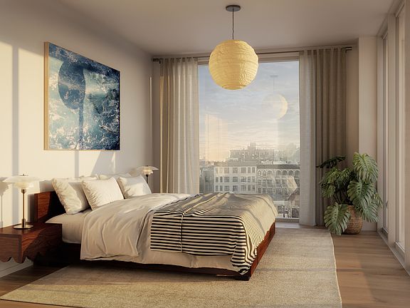 Sleek and stunning 1,107 sq ft, two-bedroom two-bathroom apartment at the brand-new luxury building, 171 North 1st Street in prime Williamsburg! This impeccably designed home features floor-to-ceiling windows and refined modern finishes. Gorgeous European white oak flooring and chic color tones further enrich the airy ambience.The gracious living/dining room is adjoined by a high-end open kitchen with quality cabinetry, Valor White quartz countertops and backsplash, and a suite of premium appliances by Bosch. Generous bedrooms are complete with a walk-in closet and spa-like bath with a soothing soaking tub.Topping the allure of this home is an LG washer and dryer for laundry ease, ample closet space, an intercom system, and hardwired "Brilliant: Single Switch" system enabling video and connectivity to the concierge and exterior entrance.171 North 1st Street is a brand-new collection of 57 unique homes. The amenity-rich building offers a fitness center with a yoga studio, zen garden, residents' lounge, children's playroom, pet spa, garage parking, bike storage, package room, storage lockers, and serene rooftop with grills and skyline views.The address is exceptional, in the north side of Williamsburg, just one block from the Bedford Avenue shopping corridor. Known for its contemporary art scene and vibrant nightlife, this neighborhood is only a half mile from the East River and a 10-minute subway ride to Manhattan!