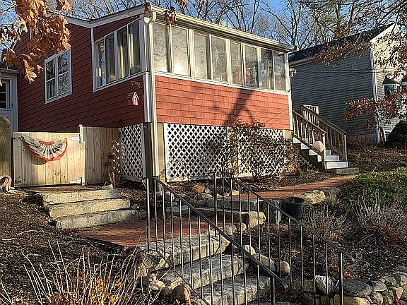 Mashpee water view Adorable 2 bedroom, 1 bath home across the street from John’s pond, views of John’s pond from your three season porch with gorgeous sunsets. Bring your boat, jet ski, kayak and fishing pole as Johns pond is a four season recreational pond. Deeded beach rights with beach just steps away. Perfect for primary, secondary or rental home. Large fenced yard with storage shed. Fully furnished. Won’t Last!!!