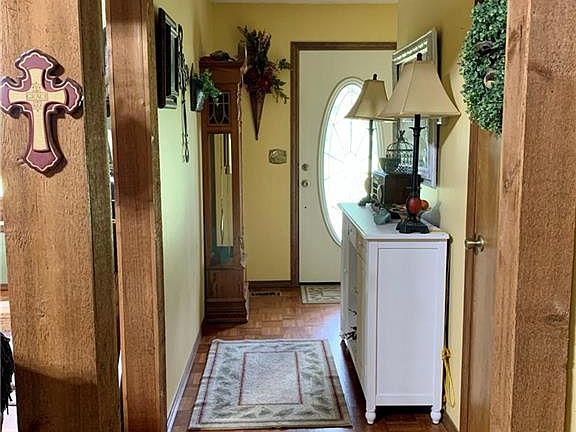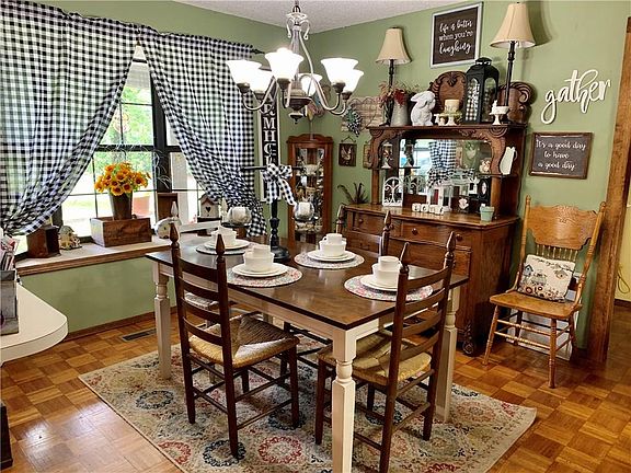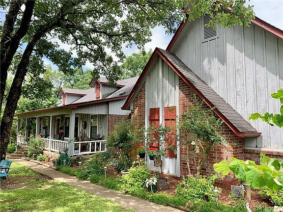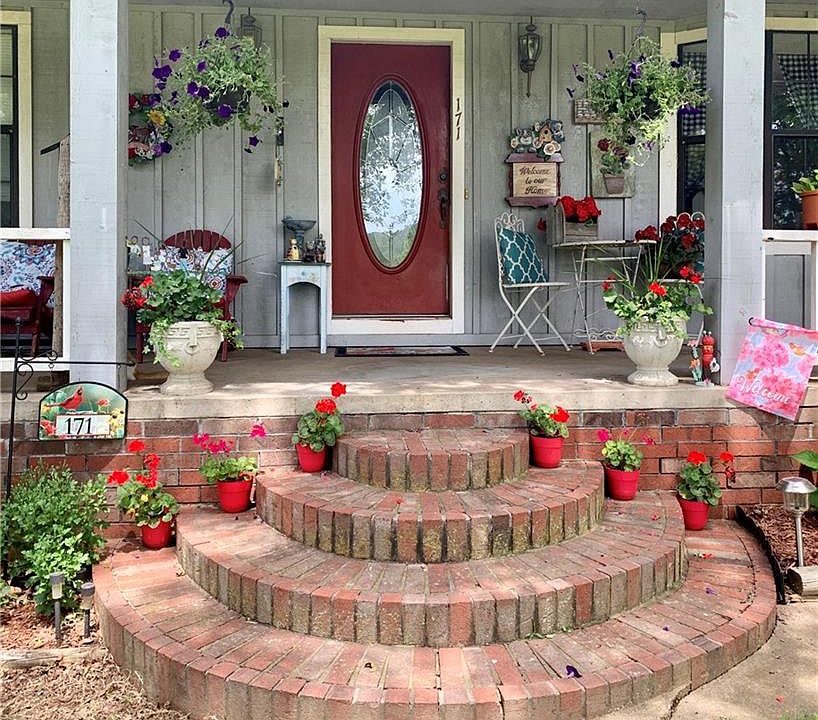 Country setting complete with breathtaking views, perennial flower beds adorn the beautiful home and cute spot flower beds decorate the immaculate yard complete with a split rail fence,Three tier round brick steps lead you up to the inviting front porch,and entry, which leads to 2 bedrooms and bath, living and dining room area, Living room boast a high cathedral ceiling with rustic beams, gorgeous wood burning brick fireplace, nestled in a reclaimed wood wall, french doors lead to the deck and pool area