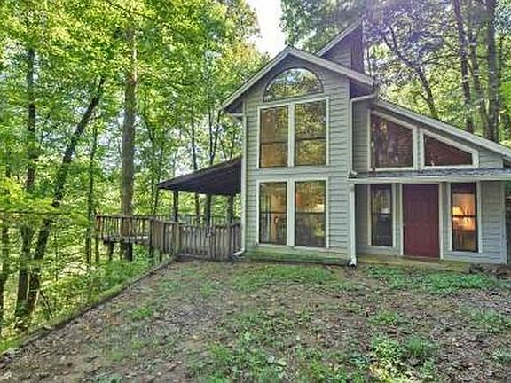 Get away to this spectacular mountain, river-front cabin located on River Toccoa. The cabin features 488' frontage on the trout filled river! Cabin's large deck overlooks breathtaking views of the river and mountains! Master on main and hardwoods throughout with full bedroom and bathroom upstairs with a loft/office area. Home has high vaulted ceilings that entail beautiful wood beams. Furniture included with sale - would make a PERFECT AirBNB property. Price UNDER MARKET value - very motivated seller!