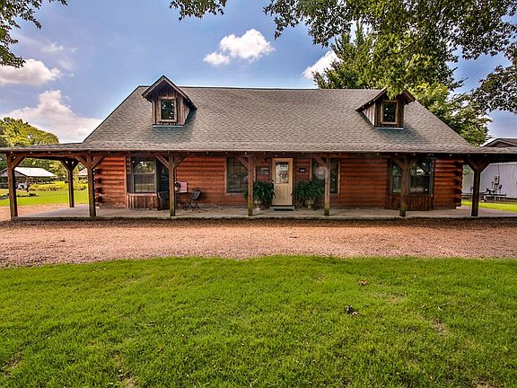 Beautiful rustic but elegant log cabin home with 4 bedroom and 3 full baths with a covered porch all the way around the house.This home features beautiful slate floors in the kitchen and baths and real hardwood flooring throughout ,the only carpet is in 2 bedrooms upstairs. Kitchen has custom cabinetry that compliments the outer log cabin walls with drawers and pullouts and beautiful flowing granite countertops.The Master bath features a large walk-in closet ,large corner jacuzzi tub,and separate shower and very nice sized master bedroom .There are 2 bedrooms and 2 baths downstairs and 2 bedrooms,a bath and a play room upstairs that overlooks the den -Let me take you outside to a beautifully landscaped yard with a boat house that you can step off ,get into your boat and be at the lake in 2 minutes .There is also a log cabin look garage built in 2017 that is oversized ,has been wired ,has sheetrock and is heated and cooled by a mini split heat and a/c system ,This would be great for a workshop or man cave. Plenty of space upstairs in case you want to expand this space even larger.. How about an Outdoor fire pit to warm you up for those fall evenings or a deck that overlooks the water for some great crappie fishing right off the deck There is so much to do ,you will never want to leave home !!
