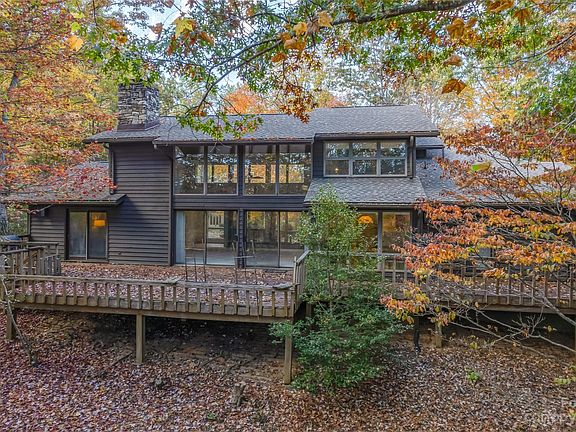 RESORT LIVING AT IT'S BEST in this mountain retreat! This private home is just a short golf cart ride from the wellness center, resort private beach and marina which makes this a great rental property. Nestled on a wooded lot this beautiful home features one level living with the Primary ensuite, a guest bedroom and bath and an open floorplan that creates a great space for gathering and entertaining. The great room is light and bright has a stone wood-burning fireplace and beautiful wooden cathedral ceiling. There is an additional Guest Ensuite on the upper level. Escape to the wrap around deck that would be the perfect spot to enjoy your morning coffee, for bird watching, meditating, or relaxing amidst a canopy of lush trees. Enjoy all the amenities inside the gated area at Rumbling Bald on Lake Lure!