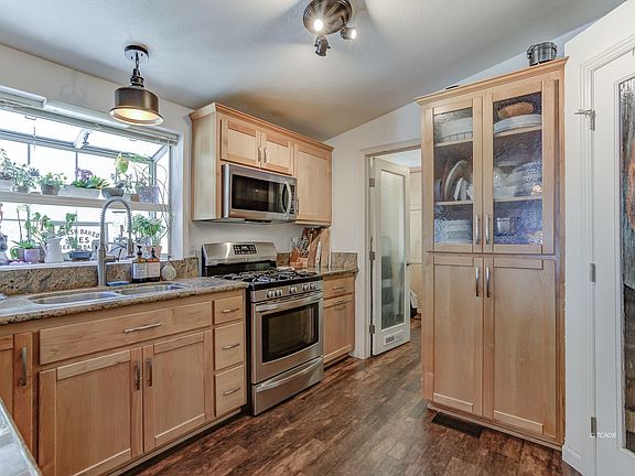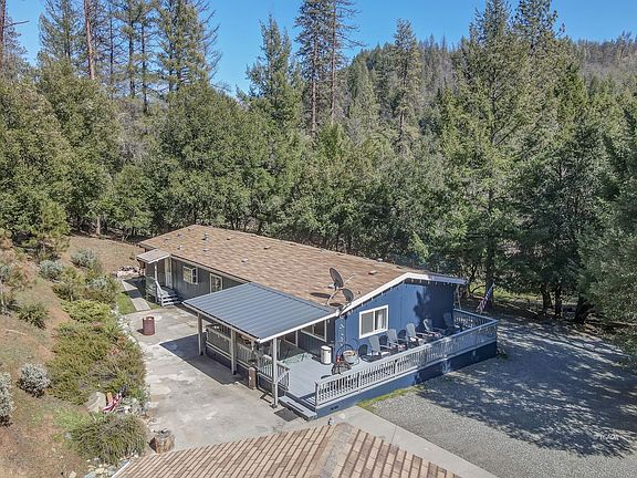 HUGE PRICE REDUCTION!!!! Medical issue forces sale. Seller is highly motivated. Immaculate 3 Bedroom 2 bath Manufactured home on a permanent foundation also has a fantastic 2 car converted garage that is detached legally permitted as an ADU. The converted garage has a mini split and water and matches the main home with its freshly painted exterior which has been meticulously maintained and looks brand new all around. The interior of this home is in model home condition and boasts vaulted ceilings and updated lighting fixtures. The newly remodeled kitchen is open and spacious and is accented with brand new stainless steel appliances. Both bathrooms have been remodeled with new cabinets and granite countertops. The home has a newly converted in ground salt water pool. Enjoy the warm summer days hanging out by the pool or under the cover of the pool side gazebo. The property is also set up with 3 pads with separate septic, power and water hookups for 3 trailers or motorhomes, each pad has ample space sprawled out over the 6 acre parcel. In total the property has 400 amps of power.
