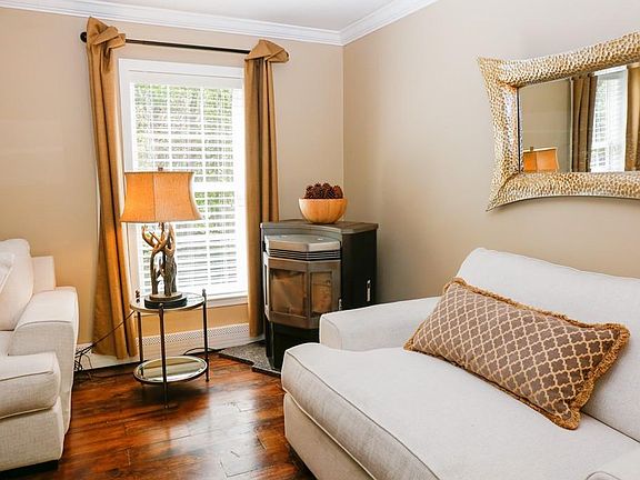 This meticulously renovated 4 bedroom 2 bath cape home sits on 3.71 acres. In addition to two bedrooms and a full bath on the first floor, there are two bedrooms and full bath upstairs as well. The living room has a pellet stove to keep the home toasty on cooler days. The kitchen has quartz counter tops, stainless steel appliances and wood cabinets. The dining/kitchen area opens up to a back deck for outdoor entertaining. Downstairs in the finished basement you will find a wonderful exercise room with sliding barn door, a large family room with a natural wood counter and wet bar, as well as a wine fridge and wine storage area. A large oversized two car garage has a spacious unfinished room, with stairway entrance to the second level - perfect for storage, a studio, office area, or whatever your needs might be. A cleared area in the backyard could be the perfect spot for a patio/fire pit for enjoying the evening hours. Surrounded by nature, this could be your forever home!