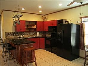 Wonderful cabin like home backing to the San Gabriel River with Screened in Porch (12x18) large trees water feature fenced in yard with tons of open space backing to the river and VIEWS!!! Several storage buildings/work shops with window units for cooling work benches storage and more. Nice 2 bed 1 bath with open kitchen granite counters breakfast bar breakfast area fridge conveys microwave opened to large living area and fresh paint through out. MUST SEE!!!!