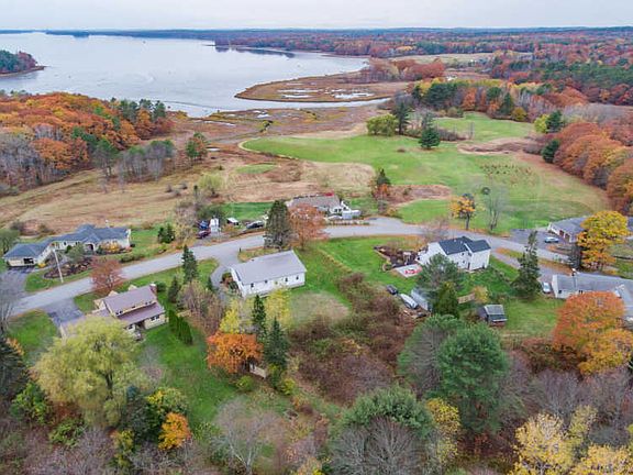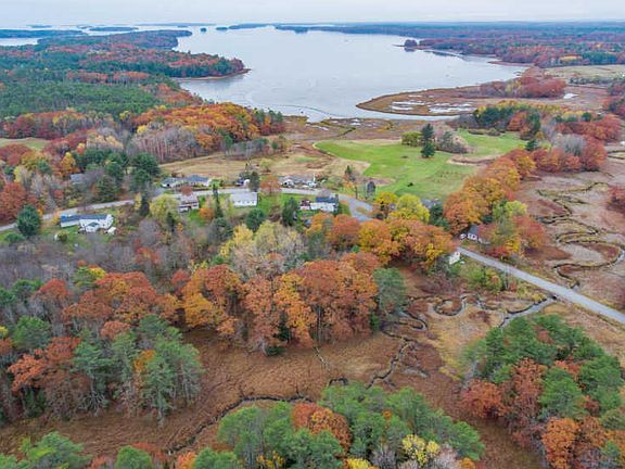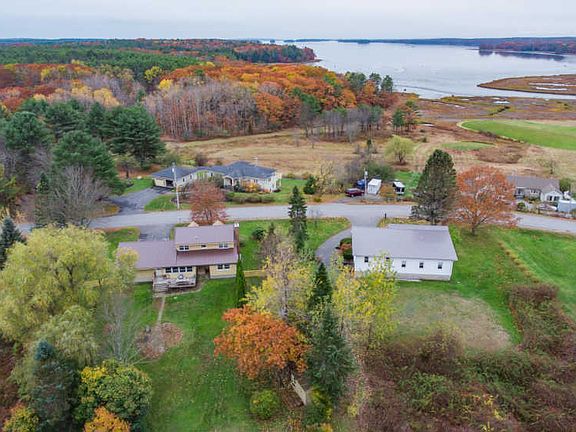 Soak up year-round sun and sunsets in this southwest-facing New England cape with covered front porch looking toward Maquoit Bay. Located just outside of Mere Point, this recently updated home features a small first-floor south-facing bedroom with en suite recently renovated full bath with tub shower shared with main floor living, office, laundry, and efficient galley kitchen. Loads of living space overlooks the large back yard, living room with updated chimney facade and gas fireplace, dining nook, formal dining room with vaulted pine ceilings. Two large bedrooms upstairs, one larger open bedroom and the other with two separate areas. Both bedrooms have views of the bay with plenty of built-ins and room for storage. Upstairs shared full bath with standing shower. Large dry basement by TC Hafford with both interior and bulkhead access has plenty of room for storage including a workshop and a wood-stove for heat. Close to town, marina and walking trails. Just 9 minutes to downtown Brunswick, 17 minutes to Freeport, and 35 minutes to Portland.