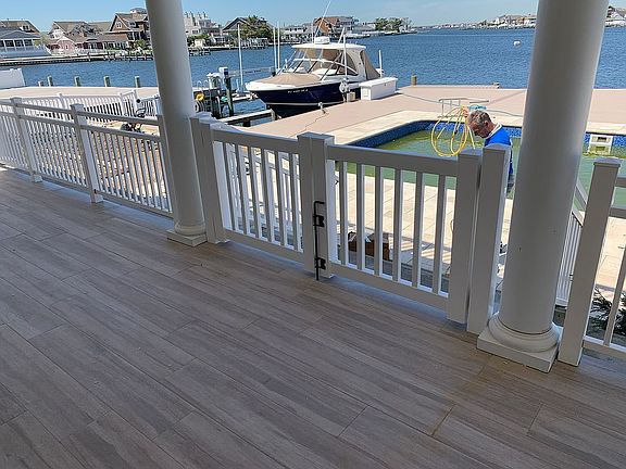 This custom Mediterranean-Style waterfront home in South Mantoloking is the perfect place to launch all of your Jersey Shore water adventures. Kayak, paddle board, jet ski and boat on calm, open waters from the 75-foot private dock. Stroll to the ocean and enjoy the private beach just 3 houses away. Enjoy the fruit trees and flowers blooming around the house or sit on the porch or by the pool with a glass of wine to enjoy spectacular sunsets over Barnegat Bay. The house features a bright, spacious two-story entrance with a graceful spiral staircase. The signature kitchen features stainless steel appliances, spacious countertops, and island seating. An open floor plan with bright, spacious living and dining areas flows graciously onto the back porch. The first floor also has a bedroom suite