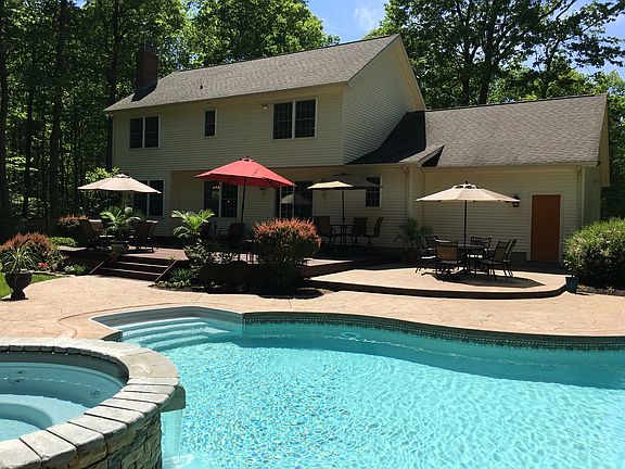 Welcome to 171 Roxbury Rd, Plantsville CT... Come see this captivating Colonial conveniently located on a cul-de-sac street minutes away from I84. This spacious 4 bedroom is enthralled with wall to wall hardwood floors. The 1st floor has beautiful honey oak wood cabinets in the kitchen with plenty of storage that sits off the living and dining room flowing seamlessly into one another. The 2nd floor has 4 spacious bedrooms where the master suite has its own recently renovated/ completed gutted full bath bath. The basement is partially finished with the laundry room and mechanical systems nicely closed off from the finished section. If you need a private studio or office simply slip away behind the glass french doors. The yard is nicely landscaped with under ground water sprinklers and an immaculate inground pool and hot tub. Sitting off the two car garage is a basket hoop which has enough driveway space to play a halfcourt game. Donât miss your chance to see this well lit Colonial that will keep you cool in the summer from the central air and warm in the winter with oil heating all while allowing for natural light throughout the home... Additional peace of mind comes from a generator already wired and on âstandbyâ.