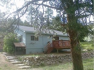Great Close in Mountain Property with 1.5 Acres backing to Pike NatlForest!! Rock Outcropings to the back & lots of trees- Right off paved Highway 67 Open Spacious Home with main floor Office + Laundry Newr Kitchen & will re- carpet - Has 20 x 30 out Garage (needs new roof) + 2nd detach Garage Great for Mechanics or Hobbist!! Has a Deck & Patio