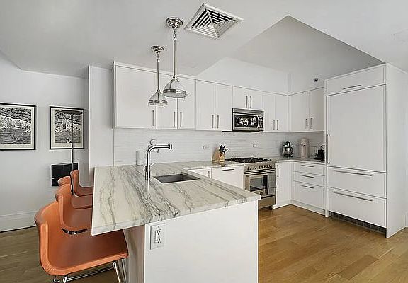 Expansive 3BD/2BA Floor-Thru Duplex with Private Garden and Private Terrace, Wide-plank Oak Hardwood Floors, Soaring Ceilings, Separate Rec. Room, Private Entrance, Stunning Chef's Kitchen and Bathroom, In-Unit Washer and Dryer, and King-Size Bedrooms in a Smoke-Freed, Pet-Friendly Elevator Building with Bune Storage, Storage Room, and Courtyard Welcome home to 171 South Portland Avenue, where no detail was spared when curating the elegant and expansive two bedroom duplex that awaits you. The open floor plan provides a seamless flow from room to room, with the gorgeous stainless steel chef's kitchen fitted with custom cabinets, Montclair Danby marble counters and oversized breakfast bar, Liebherr 30-inch integrated refrigerator, Bosch 24-inch dishwasher, and Bertazzoni 30-inch four burner gas range with oven. The bedrooms are both king size and able to accommodate a dresser, desk, plus more furniture, and just in case you still need a little more space the massive floor-thru lower level is the ultimate entertainment space with room for a large sectional, home-gym setup, pool table, and plenty more. As a bonus, the home includes two private outdoor spaces, including a private yard and private terrace where you can host your next BBQ, relax after a long day, or even take your next conference call with a lusciously landscaped backdrop. As if that isn't enough, the intricately designed bathrooms boast polished features such as Herringbone pattern marble floors, Bianco Bello polished stone walls, Waterworks polished chrome fittings, frameless medicine cabinet, Toto toilet, and deep-soaking bathtub.