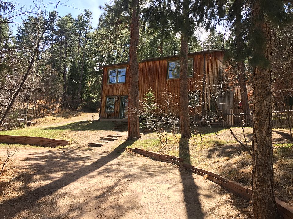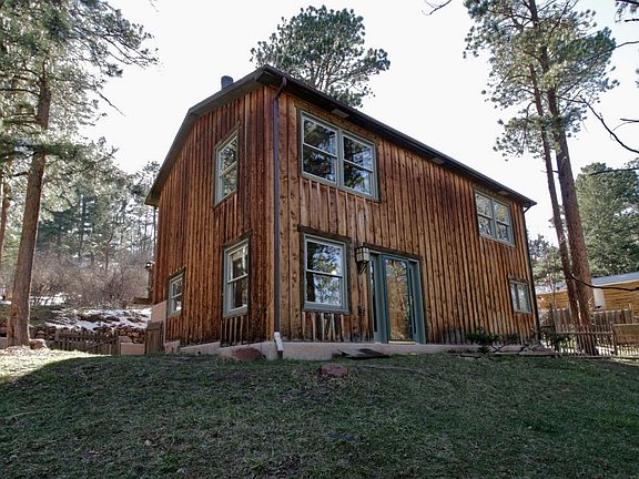 Mountain contemporary in the tall, tall trees in the Glen of Palmer Lake! Built in 1999, this 2-story home features a great use of space! Main level includes the living room, an eat-in kitchen, laundry and bath and a spacious office or play room! Upper Level has three bedrooms, a bath and walks out to the large deck! Beautiful views of Ben Lomand Mountain! Carport! Outside storage! An old outhouse still graces the land and can store your garden tools! Ready for new carpet or hardwoods! District 38 Schools!