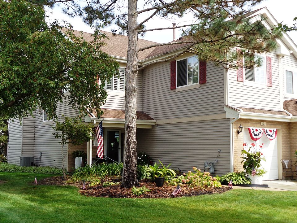 Amazing luxury corner END-UNIT townhome with open courtyard like view. Bright END-UNIT in highly sought area. 2 bedroom, 2.5 bathroom with loft. Second floor laundry room. Close to everything. Located in highly desirable Linden Park community of Schaumburg. Step into the dramatic foyer and living room, both featuring soaring vaulted ceilings and a cozy gas fireplace w/ fire glass. The spacious main floor layout includes a separate dining area and an open kitchen with white cabinets and stainless steel appliances. An elegant first-floor powder room and 9-foot ceilings throughout allow the sun to come in. Enjoy the patio, accessed by 8-foot tall sliding glass doors, backing to open green space. Skylights in both the living room and bedroom. Low monthly HOA and excellent reserves. AC and furnace, 2022. Rentals are allowed with no cap. Located just 3 miles from I-90 and near Prairie Towne Center, public transportation, shopping, dining, and entertainment. Sold As-Is. OOR Provided Photos