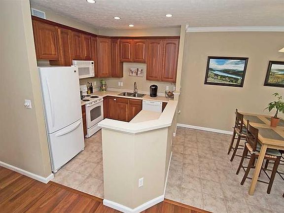 Smart and trendy is this end unit that backs to woods! Just installed hardwood floors in entry and kitchen-kitchen with cherry cabinets and angled island opening to living room and breakfast area-really cool finished lower level with built in bar-private back deck and so much more!!