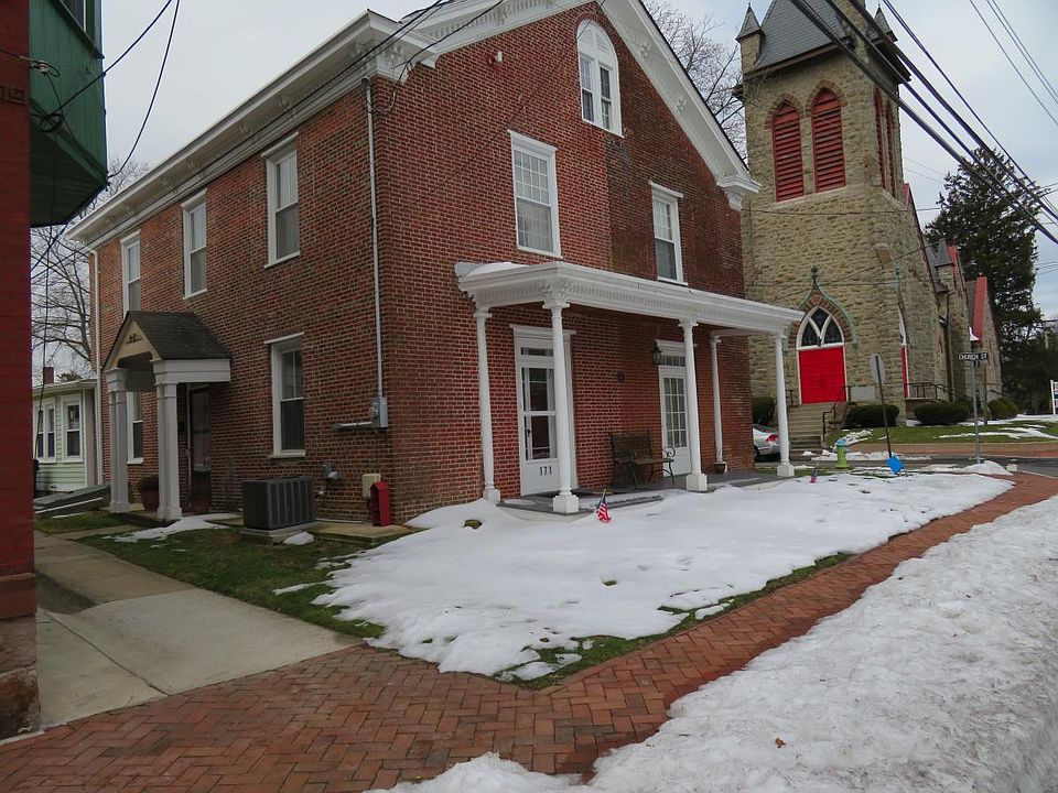 Completely redone in 2014 this historic townhouse was originally built in 1835. Two bedrooms two full bathrooms, eat-in kitchen with all new appliances, dining room, living room with gas fireplace, and third floor finished space for home office, porcelain tile in kitchen and baths, wood floors in all other rooms. Central Air. Laundry room with new washer/dryer, off-street parking space, and small yard. Occupancy limited to three persons by Borough code. No pets please. Non smokers only. Tenant pays electric, gas, water and sewer. Non smokers only please
