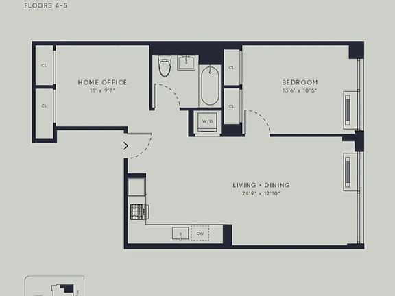 The D-line is a nicely renovated 1BR + home office layout with a queen-sized bedroom, a home office that can be used as a second queen-sized bedroom, a beautiful open high-end kitchen, large common area, in-unit washer/dryer and plenty of closet space.