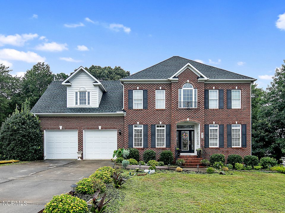 Nestled in a beautiful neighborhood, this charming two-story home offers timeless elegance and modern comfort. Featuring freshly refinished hardwood floors, the home exudes warmth and style throughout. The main level boasts a spacious living room with a cozy fireplace, a formal dining room perfect for gatherings, a beautiful foyer, a dedicated office, and a versatile bonus room. Upstairs, the master bedroom is a serene retreat with its own fireplace, complemented by two additional bedrooms and two and a half baths. Outside, you'll find stunning landscaping, a welcoming front porch, and a large private deck in the back—ideal for outdoor entertaining or quiet relaxation. The property also includes a shed for extra storage. With its blend of classic charm and modern amenities, this home is perfect for those seeking both comfort and style in a picturesque setting. Don't miss your chance to make this beautiful home your own!