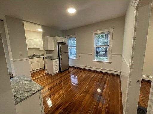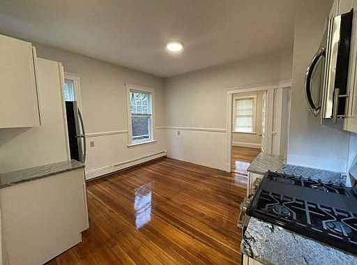 Nestled in between Inman, Kendall, and Union Sq.s', and equidistant to Harvard and MIT. Large rooms, large deck, high ceilings, antique hardwood floors, and fully COMPLETELY RENOVATED KITCHEN WITH STAINLESS APPLICANCES AND GRANITE COUNTERS. Unit has all new paint and buffed up floors! Coin-op laundry in the basement. 1 parking space included in the rent!! Trendy shops and restaurants are at your doorstep, and the property is under 1 mile to the Central Sq T Stop.