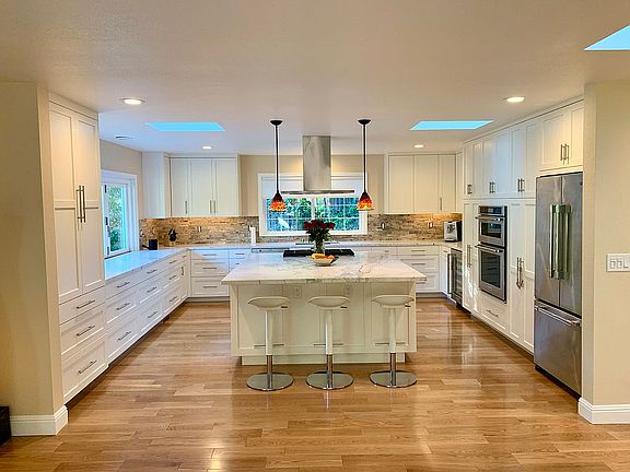 Recent major extension to this secluded home surrounded by redwood forests and unobstructed views to Santa Cruz Mountains. Custom kitchen, marble countertops and stainless steel appliances with countertop bar opening to massive 1000ft south facing deck over double carport. 1.25 acre lot on private cul-de-sac with mature redwoods forest, shrubs and fruit trees.