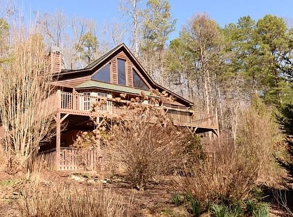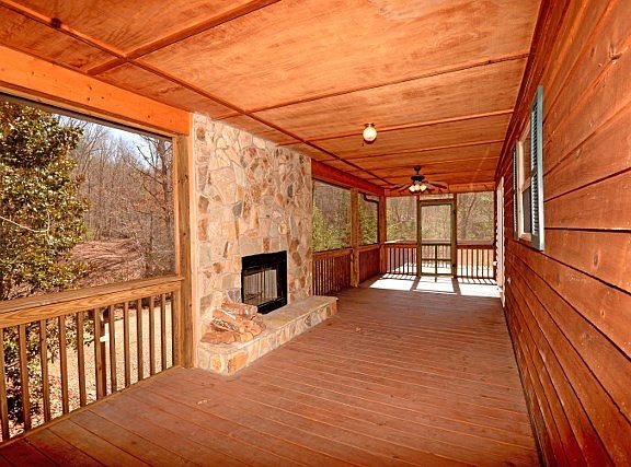 Mountain Chalet, 3 floors. Open concept living room, kitchen, dining, 2 VERY LARGE master bedrooms with walk in closets! 3.5 baths. Vaulted wood ceilings in living room (28') & upstairs bedroom (10'), Living room has stacked stone wood burning fireplace, 2 bay windows, covered porch has fireplace for the cool evenings. This home offers lots of outdoor living space, main level bedroom has access to the covered porch, large laundry room, basement has large workshop space plus great room and outside entrance. This is a great livable home and close to town.
