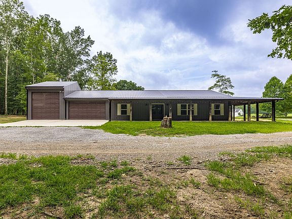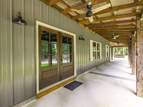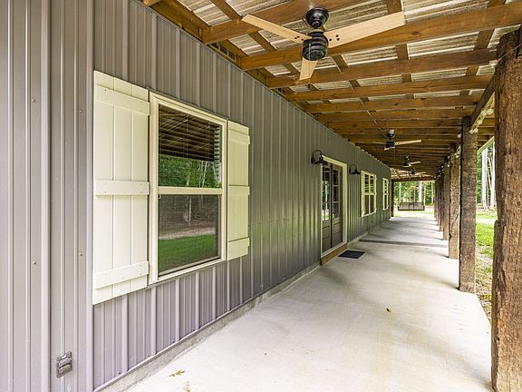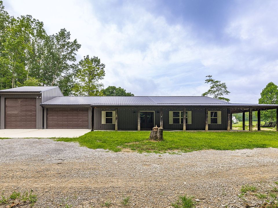 Discover the perfect blend of rustic charm and modern amenities in this unique barndominium nestled on a serene 3.5 acre lot. This stunning property offers unparalleled privacy and picturesque pond views, making it a tranquil retreat from the hustle and bustle of everyday life. Embrace the warmth and character of rustic living with beautifully crafted details and finishes throughout the home featuring craftsmen's style trim, tasteful lighting, butcher block countertops, and much more. The thoughtful split bedroom layout ensures privacy and comfort for everyone in the household. The luxurious primary suite boasts two walk-in closets, a pet nook, sliding barn doors. Enjoy outdoor living at its finest on the expansive wrap-around porch, perfect for relaxing, entertaining, and taking in the scenic surroundings. The enormous 1270 sq ft garage is a dream come true for any enthusiast, featuring an RV/camper-sized door, ideal for storing large vehicles and equipment.