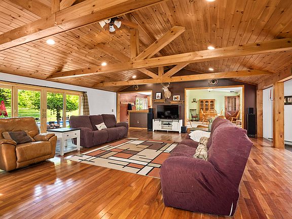 SINGLE LEVEL LIVING 5 Bedroom, 2 Bath, 2,847 Sq FT RANCH STYLE Home with attached 2 Car Garage is calling your family! This single-floor home on 5 acres has everything you need, with an expansive great room that gives a lodge feel with vaulted ceilings, exposed beams, a generous hearth, and a beautiful self-feeding pellet stove, so your only worry is what to have on the barbeque for dinner. Imagine walking into this home across the oversized granite walkways, enjoying the mature landscape, and taking in the view of your homestead, only to continue to your backyard vacation oasis, where you can take in the rest of the landscaped yard and IN-GROUND POOL. It will feel like being on vacation all summer long. This home effortlessly accommodates both family living and entertainment. Enjoy the privacy of mature woods enclosing a spacious and level backyard and an enormous 2-bay Barn/Workshop with plenty of parking for all your toys. This property offers the convenience of being 10 minutes from Lake Winnipesaukee and Merrymeeting lakes, mountains, MARINAS, shopping, and a short drive to the Seacoast. Delayed showings until after the first Open House on Saturday, May 25, from 10 AM-1 PM. The second day of the Open House is Sunday, May 26, from 10 AM to 1 PM.