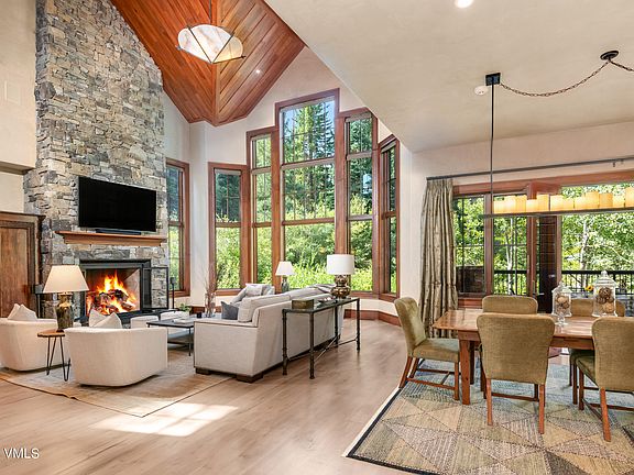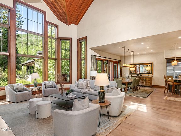 Welcome to the premier residence in Village Walk, nestled among the serene aspen trees with easy ski in/ski out access from the Dally Ski Way. No expense was spared in crafting this exquisite 5-bedroom, 5.5-bath home, showcasing a perfect blend of mountain charm and modern design. Step inside and be greeted by the warm ambiance of wood-clad vaulted ceilings, creating. an inviting and cozy atmosphere. The open-