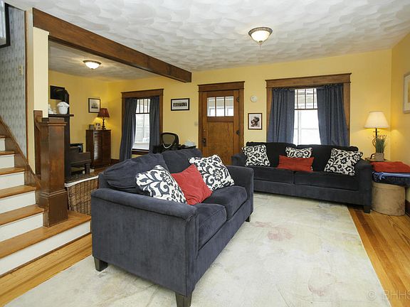 Looking for charm and character instead of cookie cutter? Then look no further than this classic three-bedroom Cape Cod home. From the moment you walk through the vintage front door, you'll be drawn to the craftsmanship of the woodwork, the brickwork and the Artex combed ceilings. Picture yourself playing cards with the family on the three-season front porch or snuggling up fireside to read a book at the gas log stove, all with a flip of a switch. Venture outside to the large, fenced-in back yard, complete with picnic area and pretty view of the river. Stash your boat or lawn and garden supplies in the oversized garage. Other features include hardwood flooring, ceiling fans, a convenient 1/2 bath on the main floor just off the kitchen, and plenty of storage space in the basement. Updates include new central a/c unit (2014), house exterior painted (2015), new kitchen countertop (2017) and more. Home is smoke-free, pet-free and super clean due to allergies. Quiet, safe, family-friendly neighborhood.