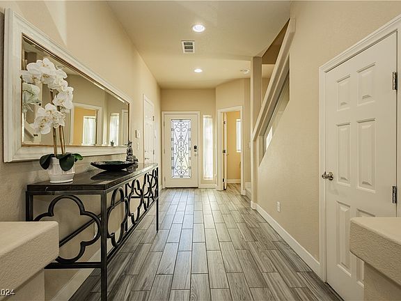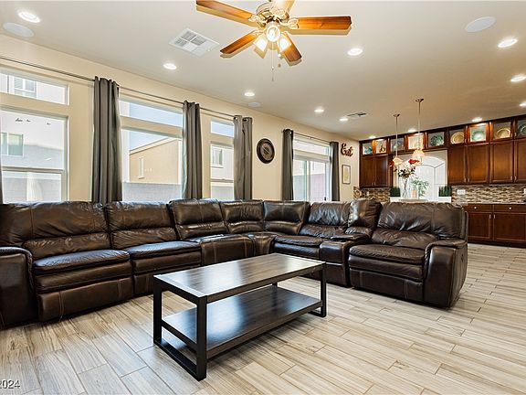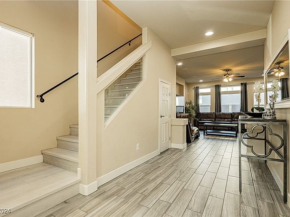 Truly Gorgeous Tri-Level home located in highly desirable Coronado Ranch in Southwest Las Vegas. This Beautiful property features 4 bedrooms and 4 bathrooms, including two large primary suites on separate levels. It is perfect for multi-generational living or anyone seeking comfort and privacy. Layout offers a spacious open-concept living area on the main level, with the dining, kitchen, and living spaces seamlessly connected—ideal for both entertaining and everyday living. The Kitchen stands out with elegant granite countertops, spacious cabinetry, large island, and stainless-steel appliances. Third level offers a private retreat with views of The Strip, making it an ideal space to relax or entertain. Outside is the Brand-New backyard retreat, featuring low-maintenance synthetic grass and attractive landscaping. Don't miss the opportunity to Own the Perfect home near an eclectic range of restaurants, shopping, parks, and schools, just minutes from the vibrant Las Vegas Strip!