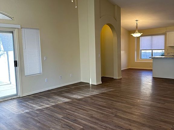Single family one level home with vinyl plank. Dining room with vaulted ceiling, ceiling fan, and den off living room with closet. .Kitchen with range/oven, dishwasher, disposal, refrigerator, pantry closet, and island counter. Split bedroom floor plan with vaulted ceiling and ceiling fan. Master bedroom with walk in closet, vaulted ceiling, ceiling fan and large window over looking patio/backyard. Master bathroom with separate shower and garden bathtub overlooking backyard. Desert front yard with auto watering system. Desert rear yard with auto watering system. 3 car garage with auto opener. RV gate into backyard. Corner lot. **RENTER/REALTOR TO VERIFY EVERYTHING IN THE LISTING IS CORRECT INCLUDING BUT NOT LIMITED TO APPLIANCES* If pets are approved there will be an additional fee of $25 per pet per month and/or non-refundable $150 Pet deposit per pet. An additional 3% Admin fee will apply along with a one time $150 non-refundable lease fee.**