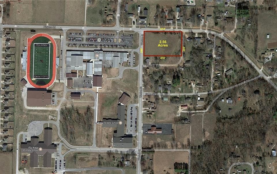 Pea Ridge is booming! This corner is situated across the street from the new Pea Ridge High School, the new middle school, and elementary, on the corner of Weston and Pickens (Hwy 94). Multiple possibilities for commercial development, i.e. C-Store, Retail, etc. Land lays great and is very level.