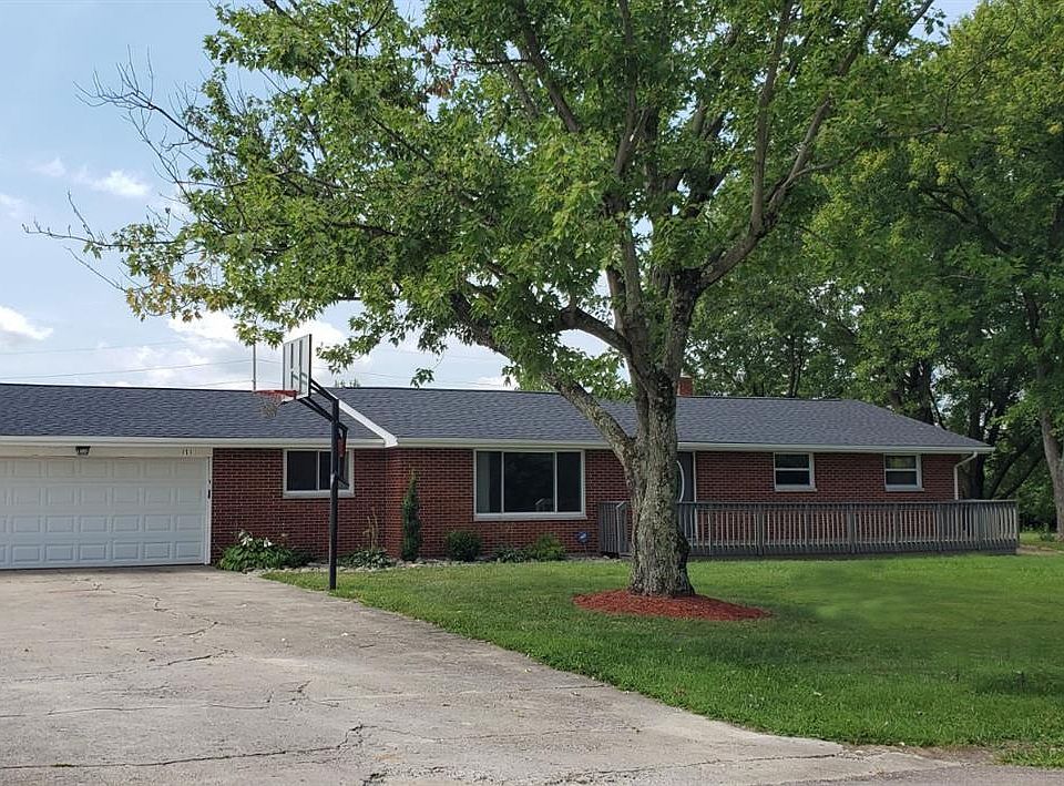 GREAT location, updated fabulous home! Large ranch w/unique layout & separate entry that allows in-law suite/rental income. Finished LL w/own kitch, living space, 2 BR & 1.5 baths. Main level has 3BR, gorgeous wood floors, eat-in kitch. Huge pole barn w/electric & 1/2 bath. Large yard w/mature trees & patio area w/Coy pond. Brand New Roof!