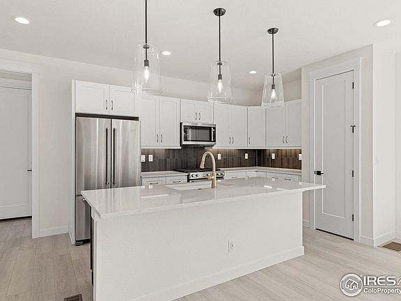 Builder offering incentives towards rate buy-down and closing costs! You will immediately notice the difference when you walk into your new home. This beautiful duplex home offers 9 foot ceilings with 8 foot doors on the main level. A large kitchen outfitted with top-of-the-line Kitchen Aid stainless steel appliances, endless cabinetry, pantry and large island is the show stopper of this home. Next to the kitchen there is room for a separate dining area and living room with cozy fire place. Separated behind the kitchen is a powder bathroom, a pocket office with built in desk, and a sizable attached two car garage with an 8 foot automatic garage door. Upstairs, there is a total of 3 bedrooms with double depth laundry room and shared bathroom with tub in the hall. The primary suite boasts an elegant vaulted, spacious walk-in closet and bathroom with double vanities and spa like shower. Don't forget your 5' fully encapsulated crawl space for all of your storage needs and access to a fully fenced side yard from your garage. This 3 bed, 2.5 bath home is one of the first available in this distinctive community with incredible views of the front range. Westerly is designed with almost 40% open space. The community will include miles of walking trails, parks, a future school site, and a Village Center. Additionally, "The Waypoint" amenity center welcomes you to lounge by the resort style pool, relax in the year round hot tub, workout in our large fitness facility, warm up by one of several fire pits, BBQ with friends, watch a game on the big screen or catch up with neighbors in the Latitude room with a coffee by the fireplace.